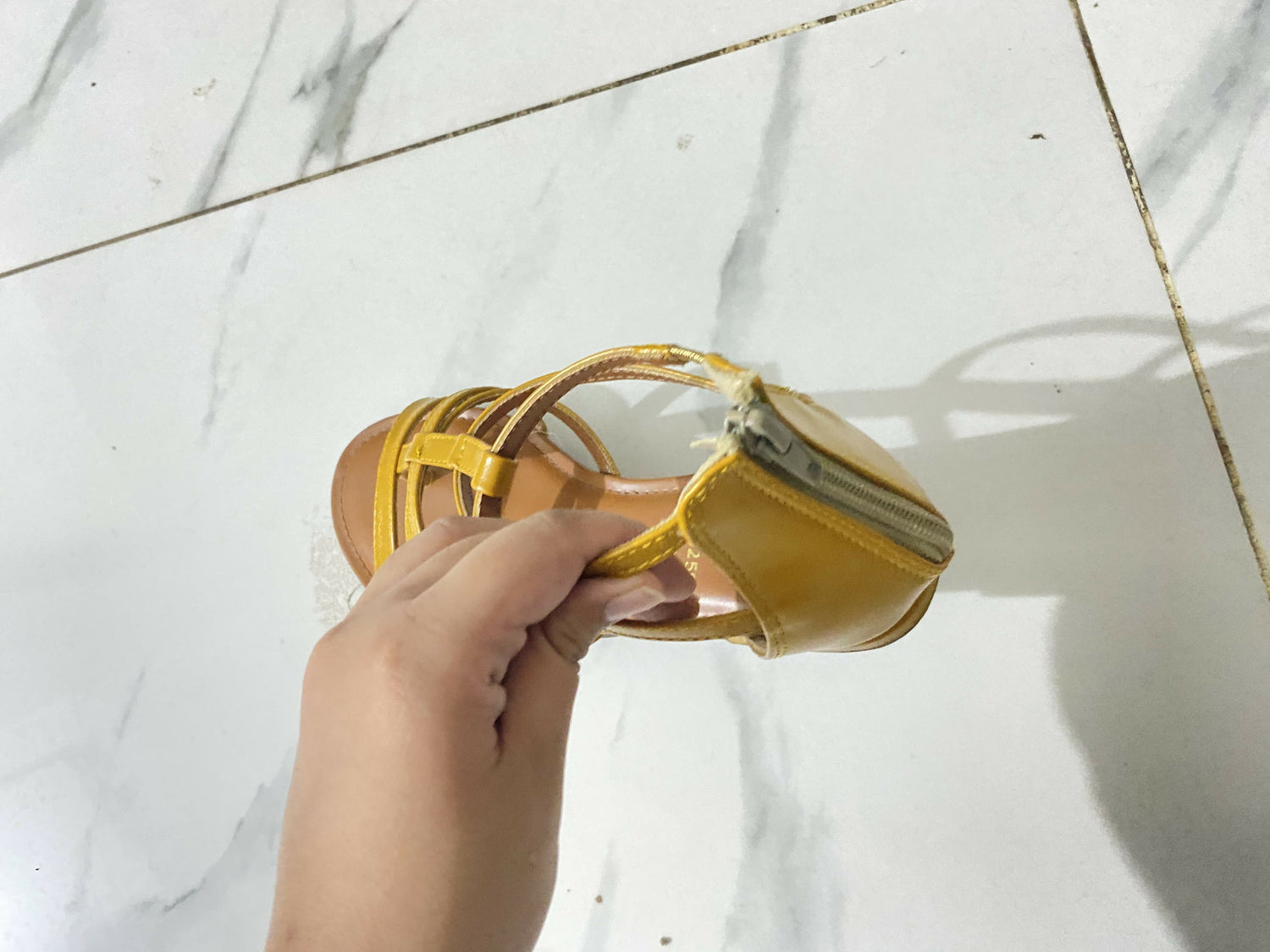 | MATERIAL & MEASUREMENT | •Upper Material: Synthetic leather with glossy finish •Lining: Fabric/synthetic blend •Sole: PU (Polyurethane) or TPR (Thermoplastic Rubber) •Heel Type: Flat •Heel Height: Approx. 0.5 inches (1.2 cm) •Footbed: Lightly cushioned synthetic insole •Closure: Back zipper •Size: 38 |