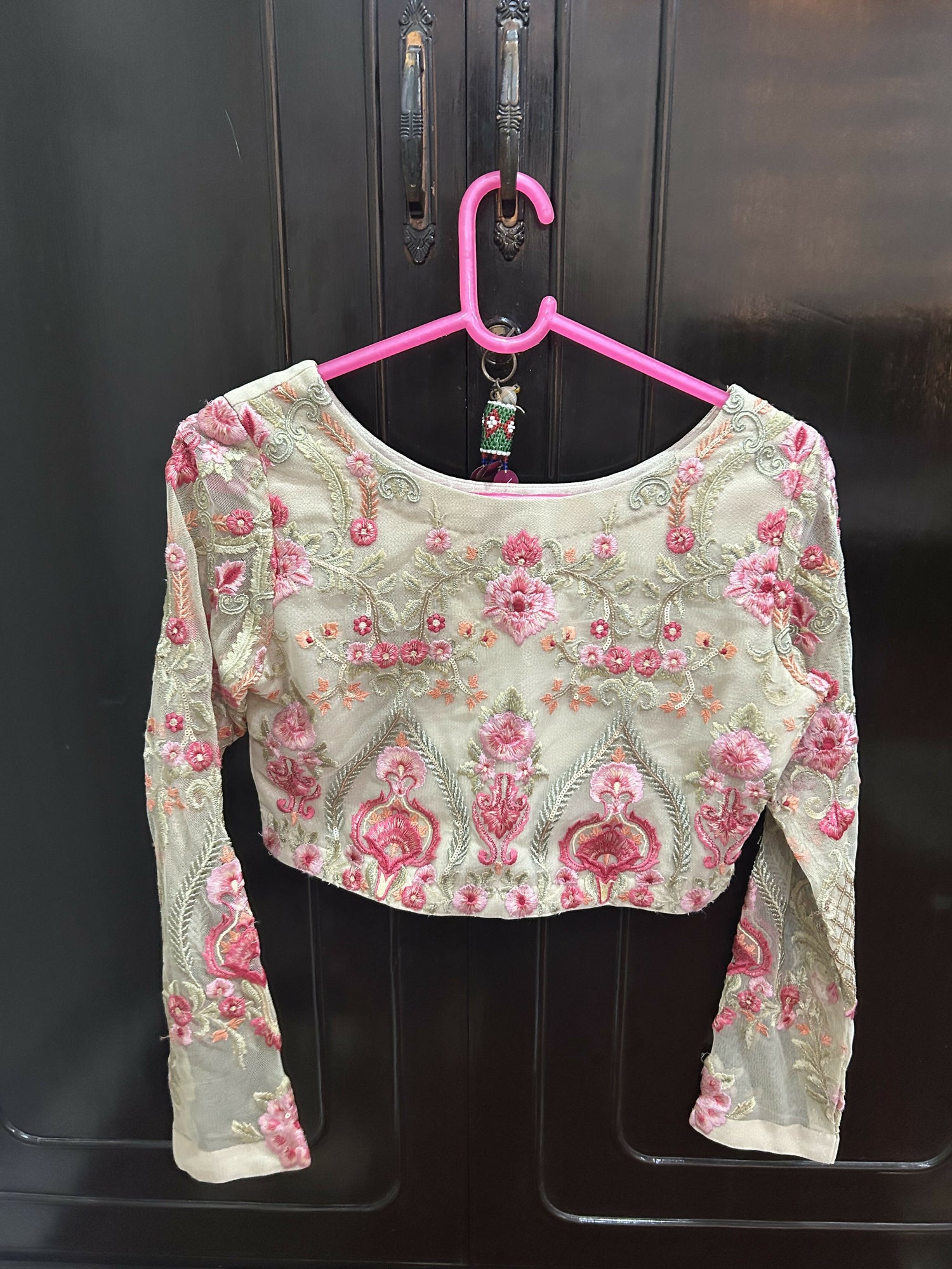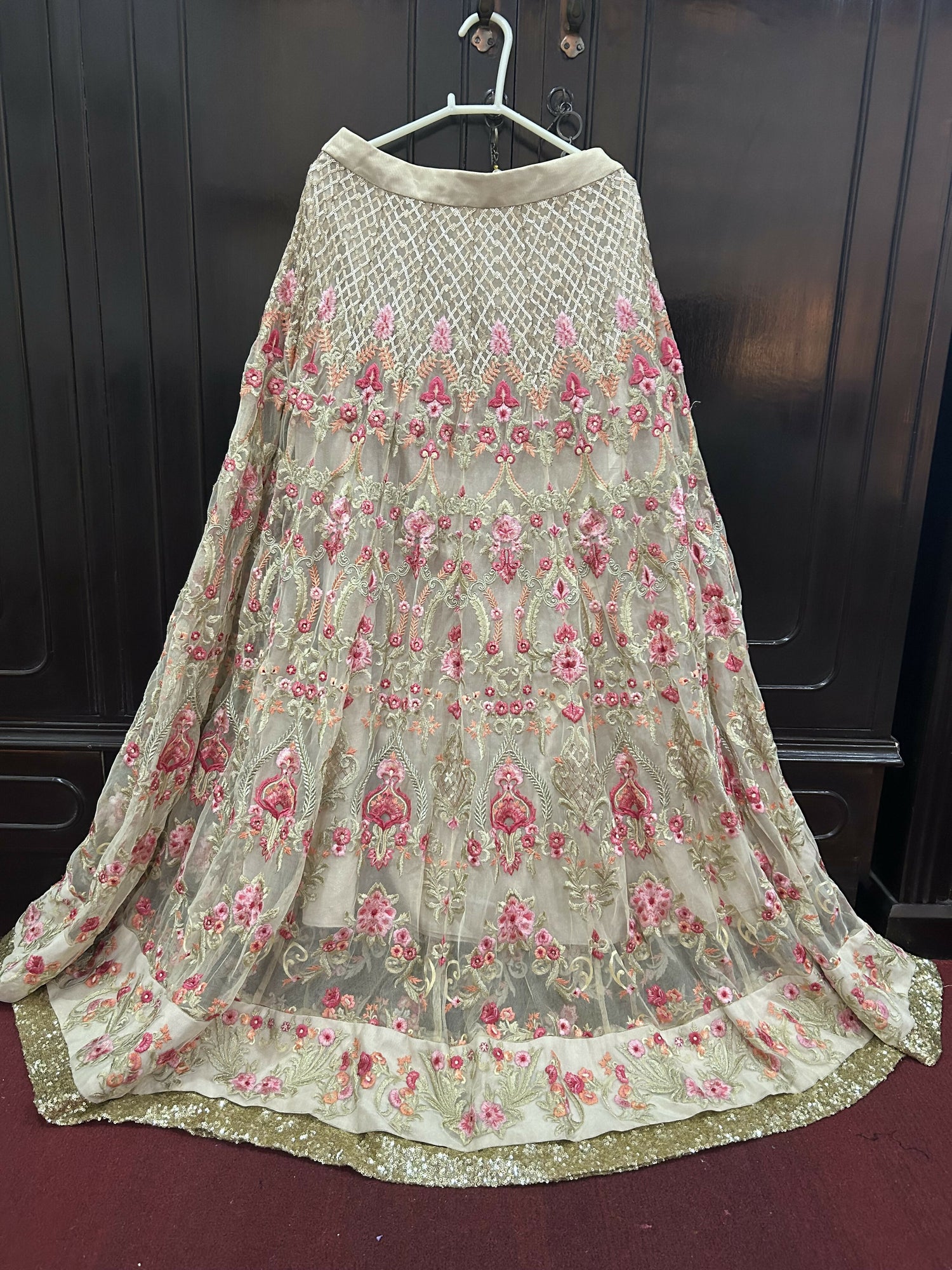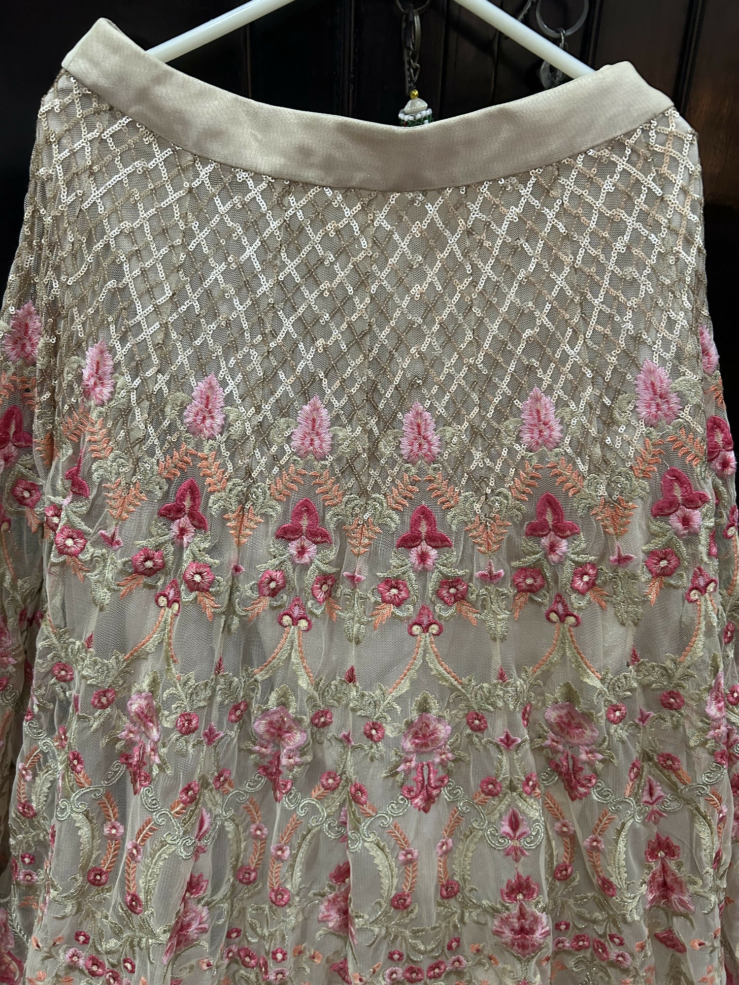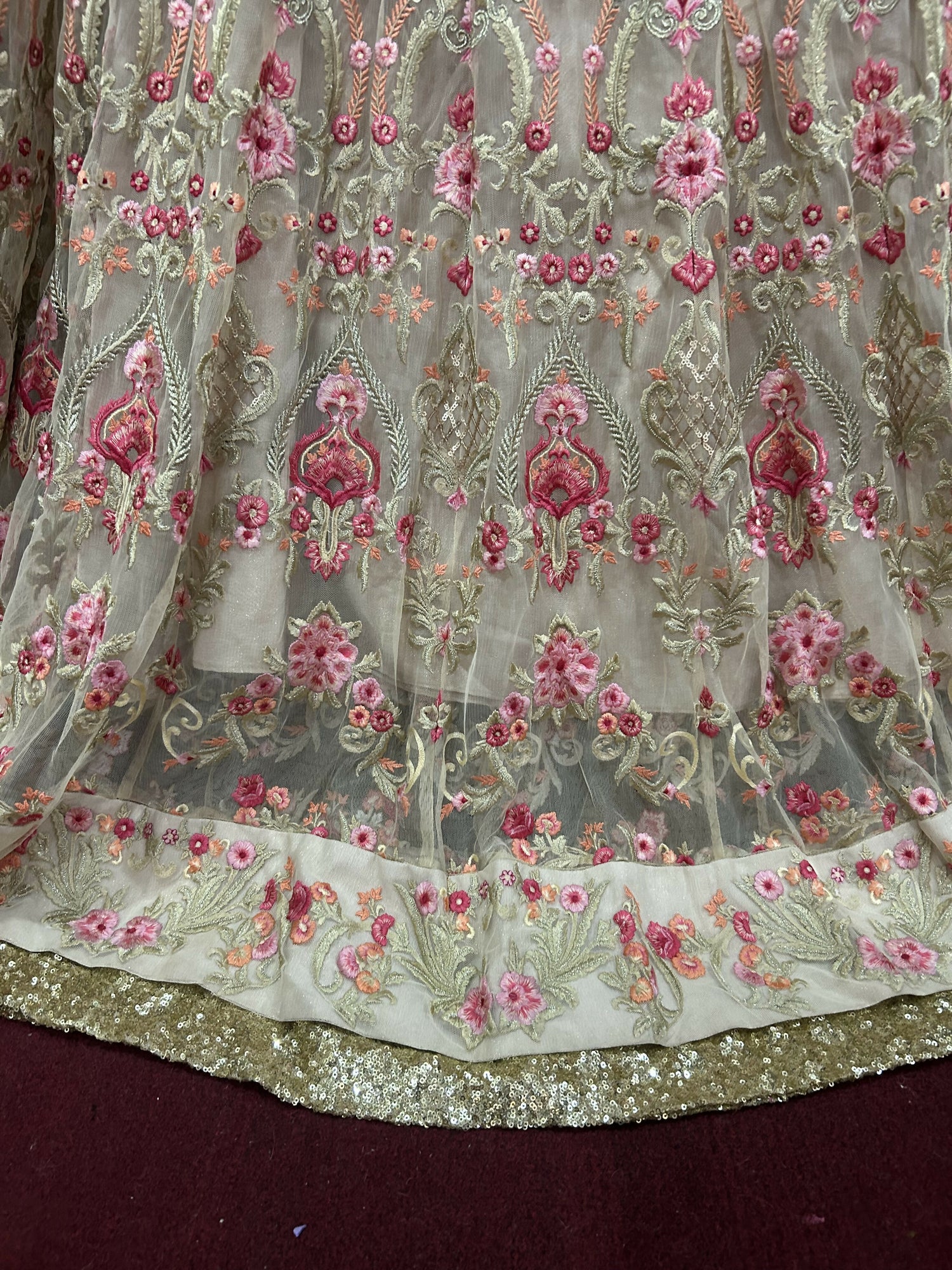 | MATERIAL & MEASUREMENT | Material: Chiffon with Heavy Embroidered Measurements: Blouse Length: 13.5 inches Waist Shoulder: 14 inches Sleeves: 22 inches Zip on the side of blouse Skirt: Waist adjustable Length: 48 inches |