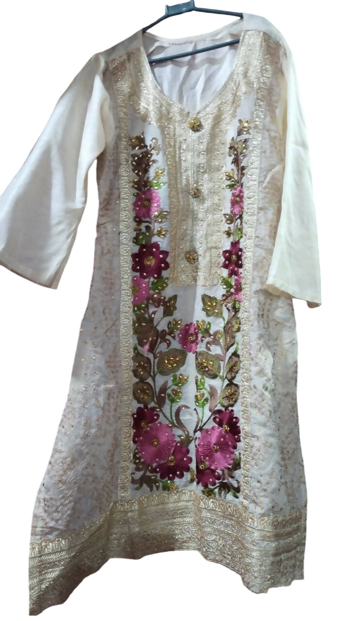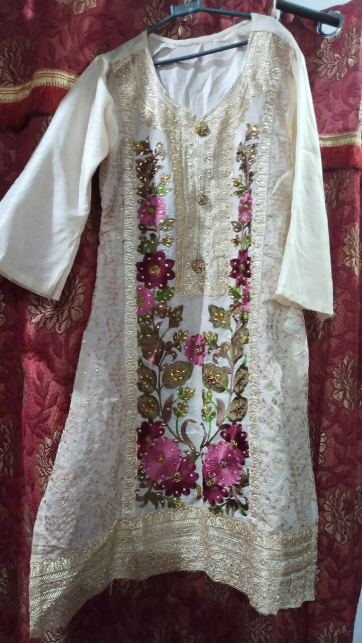White 3 PC Suit | Women Locally Made Kurta | Medium | New