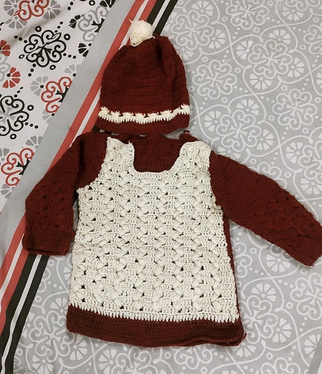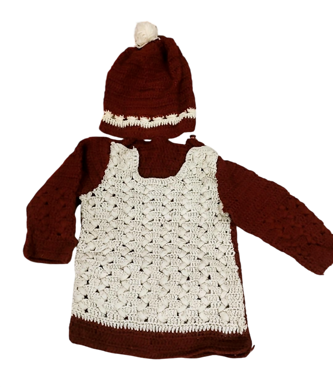 Unisex handknitted Sweater & Cap for Kids | Baby Sweater/Jackets | Small | Brand New - Maroon & off-white is backordered and will ship as soon as it is back in stock.