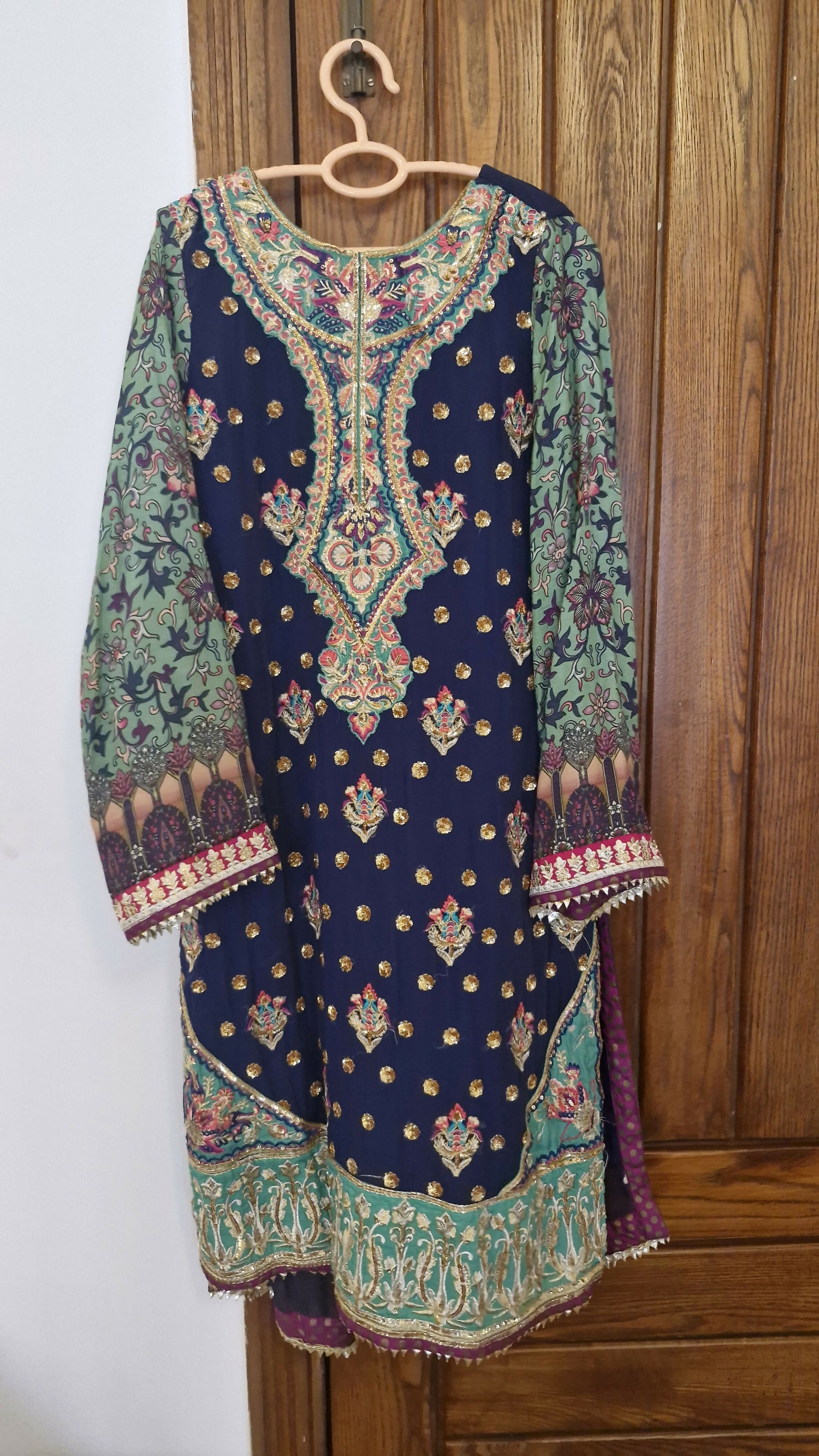 Embellished Chiffon shirt and shalwar with a beautiful Embellished net dupatta.