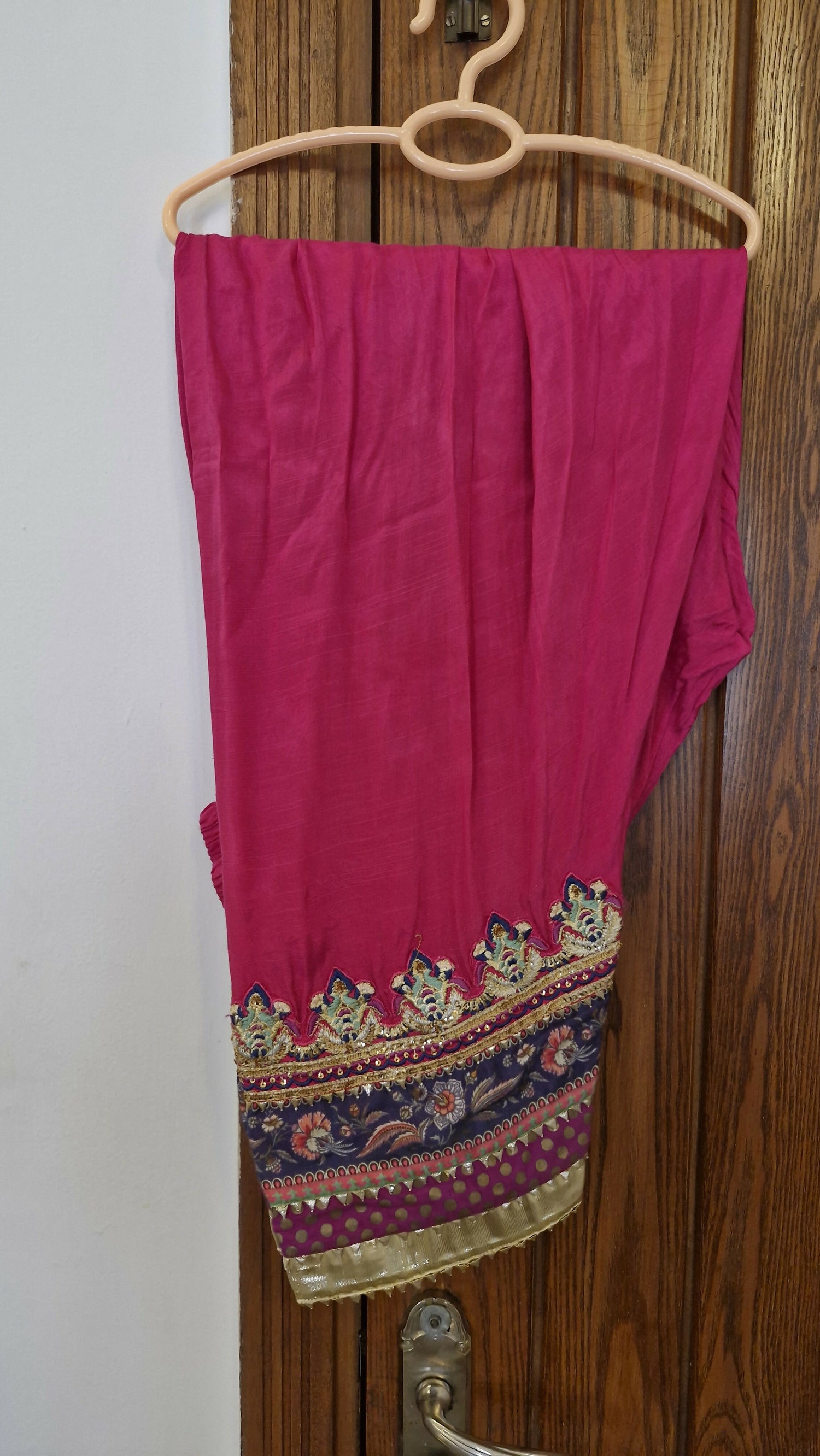 | MATERIAL & MEASUREMENT | Shirt : Chiffon Shalwar : Pakistani Raw Silk Dupatta : Net |