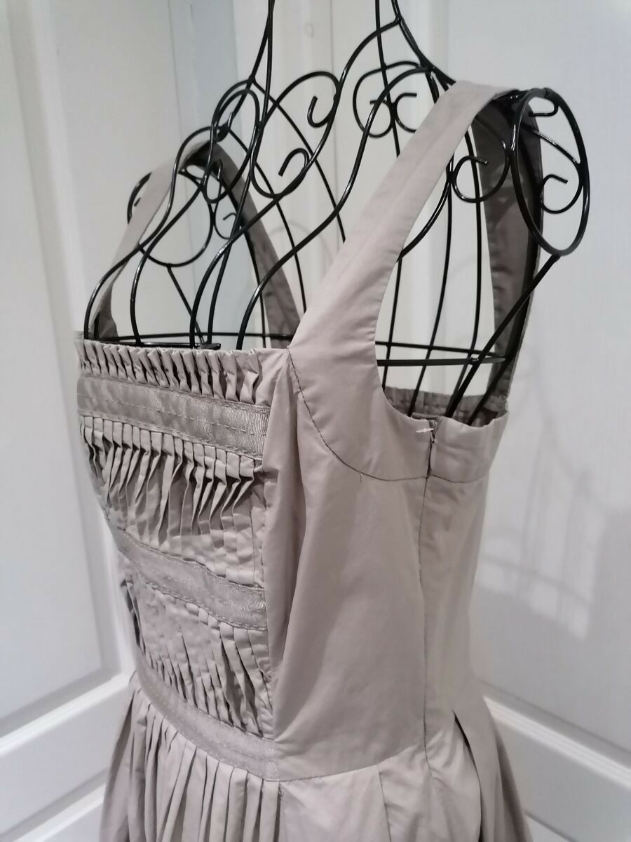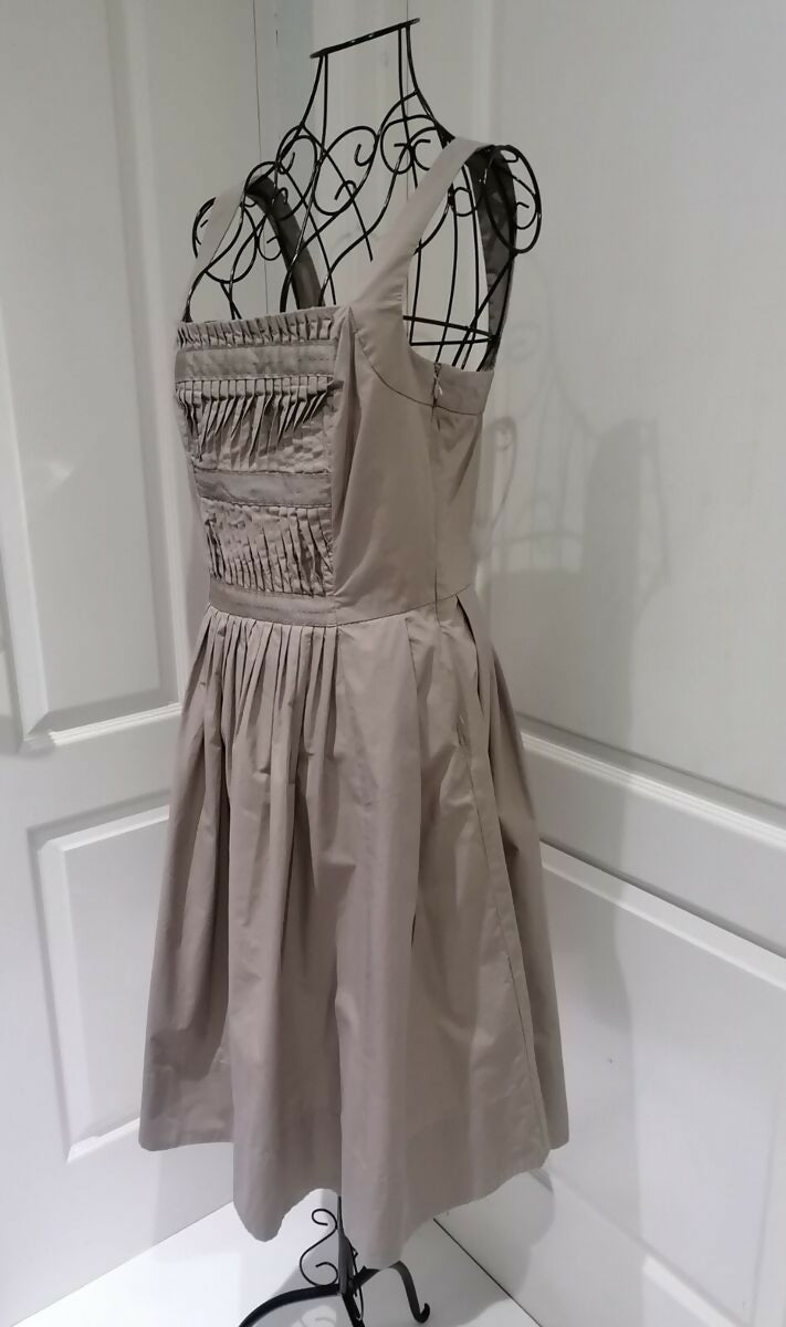 A line fit flare beige dress pleated occasion party dress 100% winter cotton
