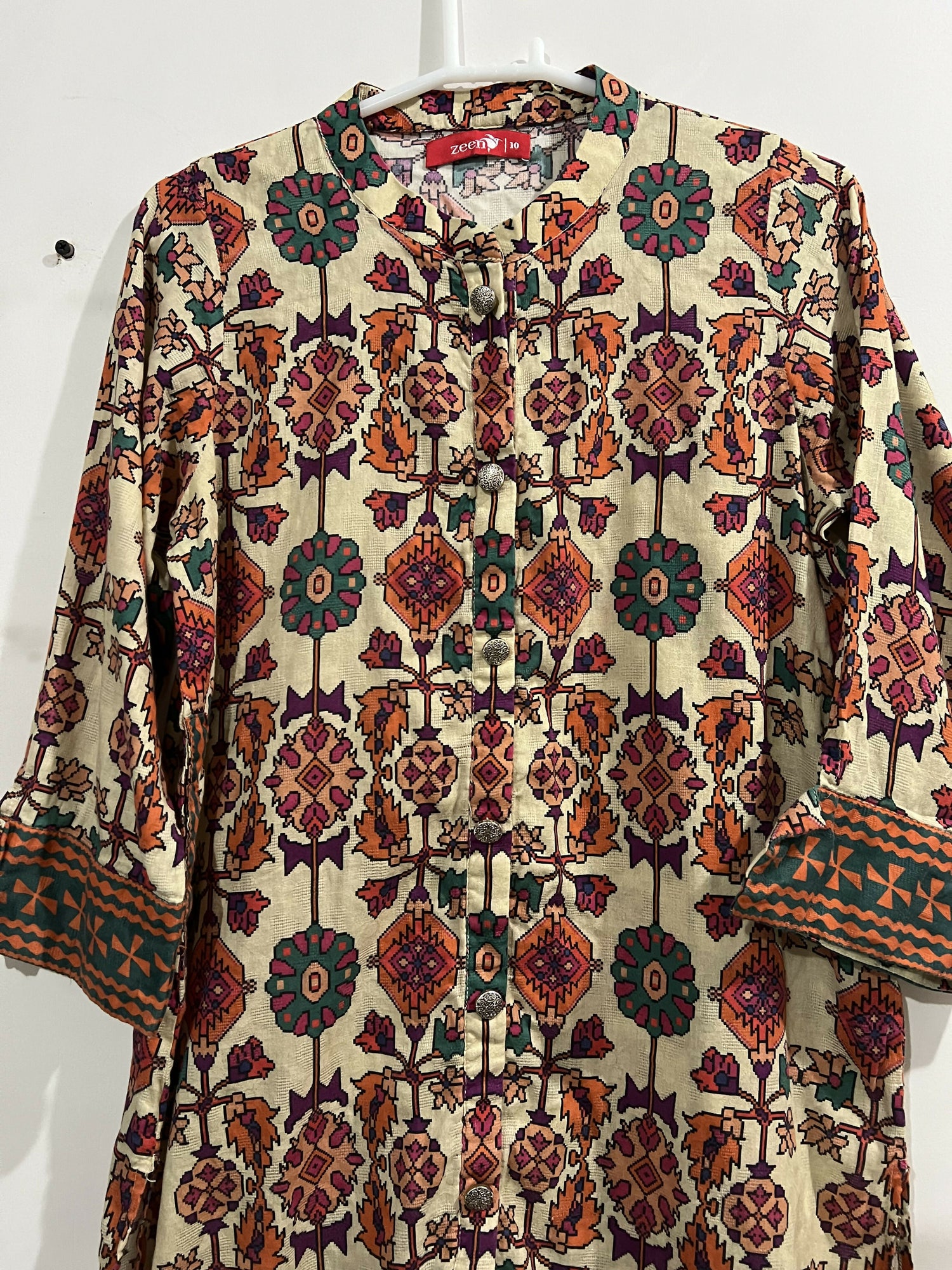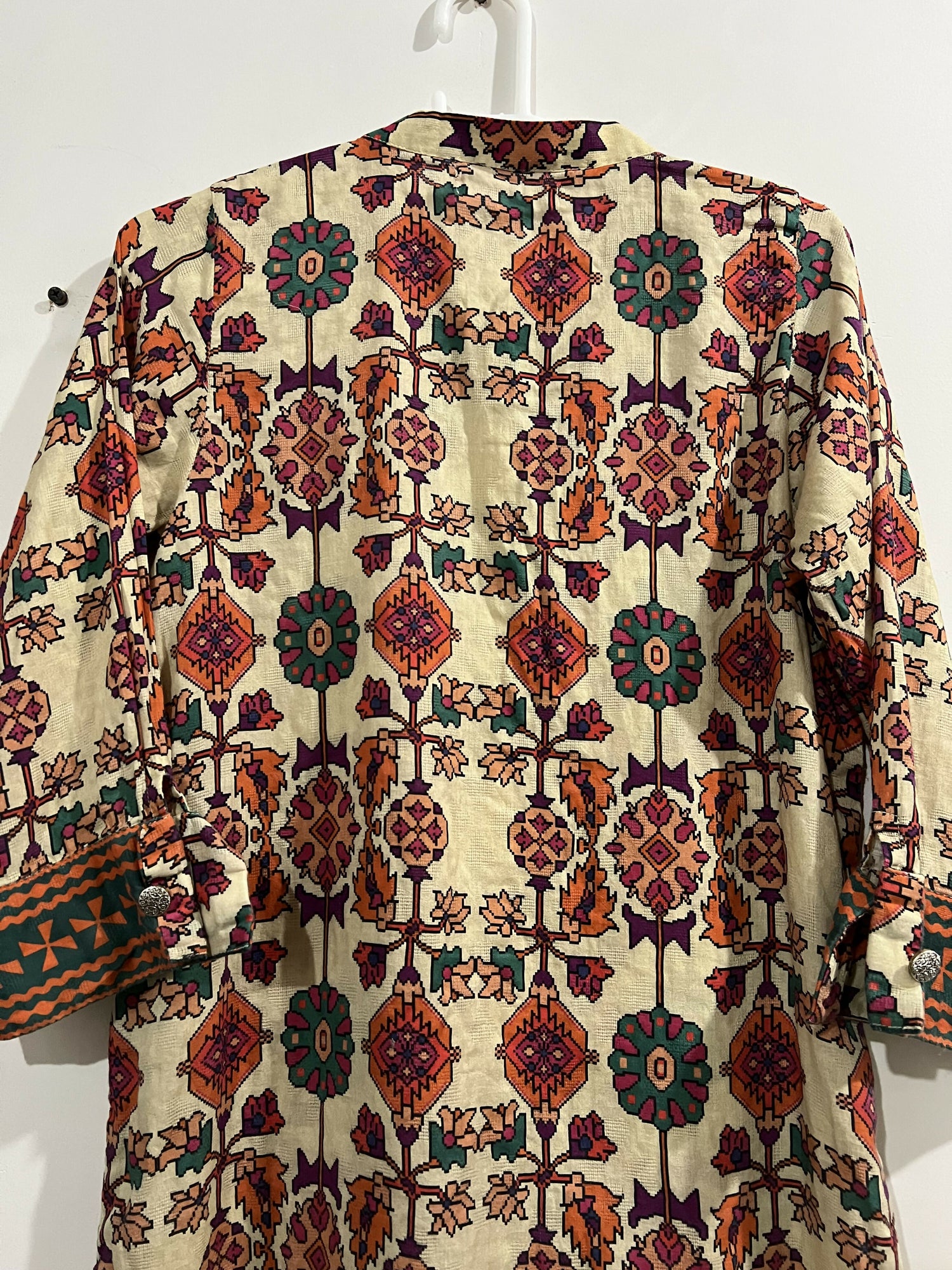 MATERIAL & MEASUREMENT Lawn shirt summer stuff Measurements Size medium Front length: 33 Back length: 36 Chest:19 Sleeves: 18 With straight pockets right or left on front side