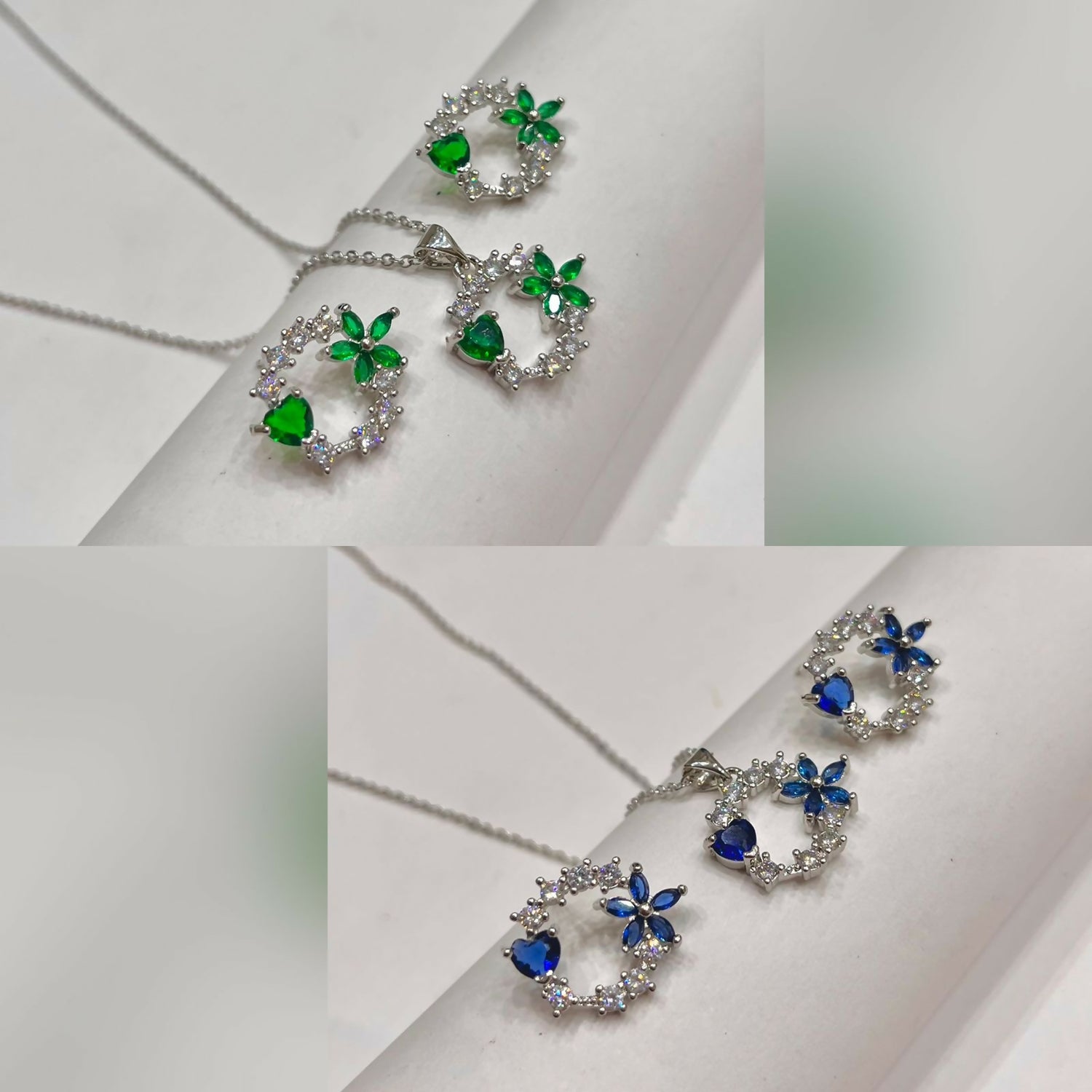 | MATERIAL & MEASUREMENT | Colors: Green with silver stones Material: Zircon |